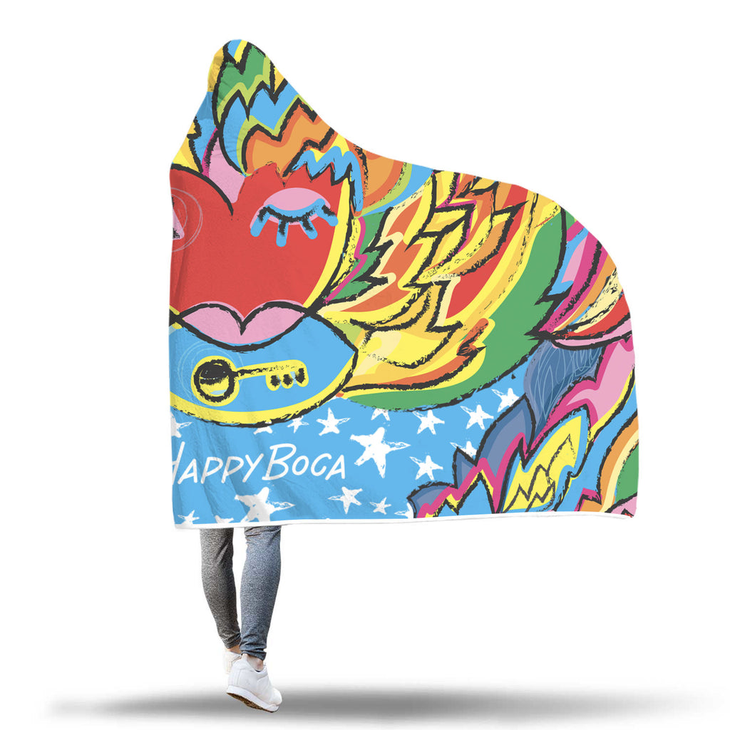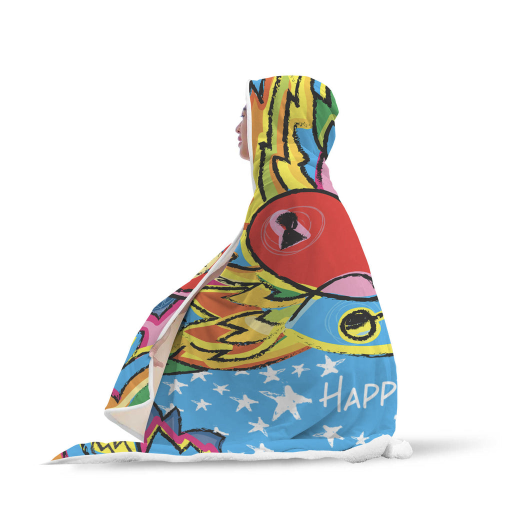 Cozy up with this custom printed hooded blanket.