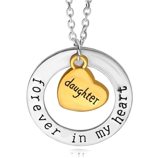 To always carry your Daughter with You! This fashion necklace makes the perfect gift idea for Girls, Women, your Wife, Mom, Daughter, Girlfriend, or Her. Show your sentiment for your daughter with this beautiful two toned pendant necklace that will put a smile on any lady's face!