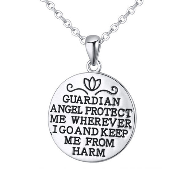 This stunning charm pendant works as a token of love and protection for anyone who wears it.  Made with a hand stamped engraving that says "Guardian Angel Protect Me Wherever I Go And Keep Me From Harm".  The perfect staple piece for anyone's jewelry collection, this pendant will easily match any casual outfit.