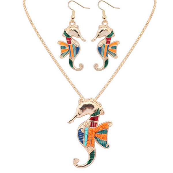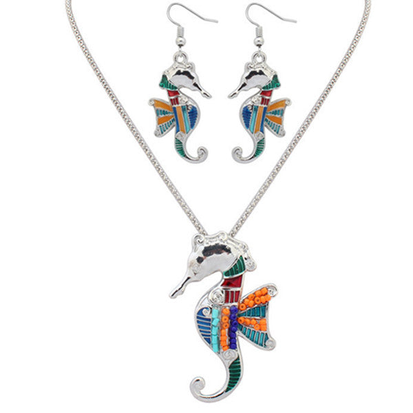 This Seahorse Hippie Pendant Set makes a standout addition to your collection. Coordinate this necklace and earrings set with any ensemble from business casual to everyday wear. Perfect to show off your individuality and unique personality. Also, makes a great gift!