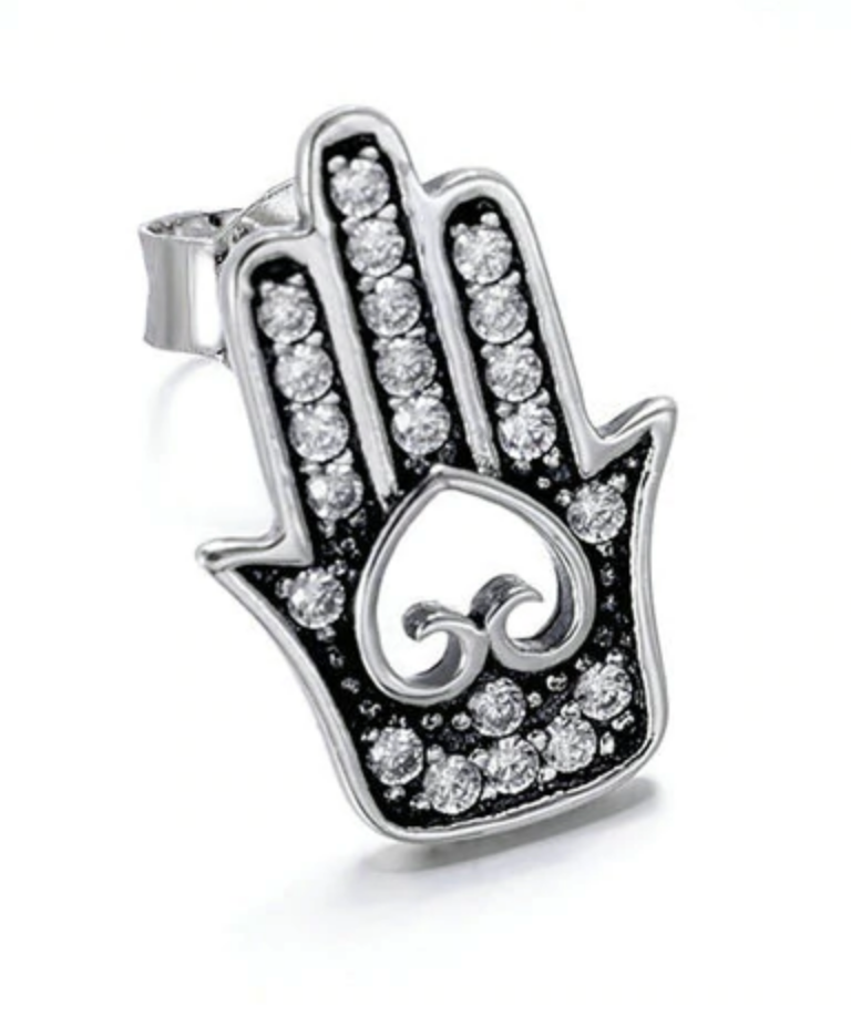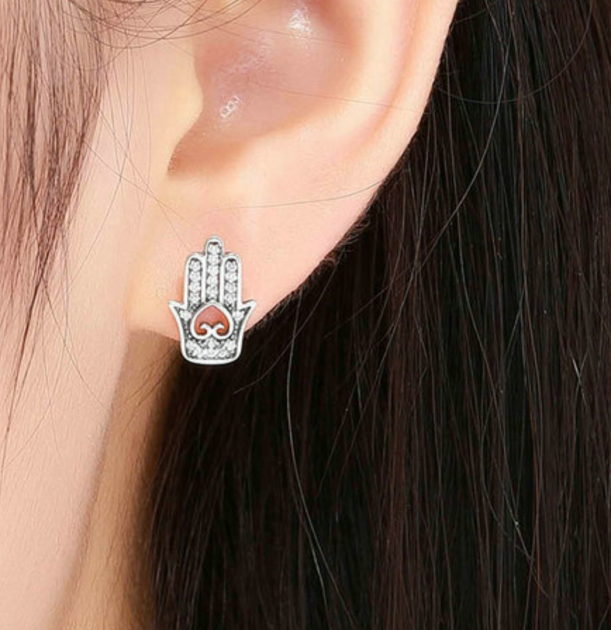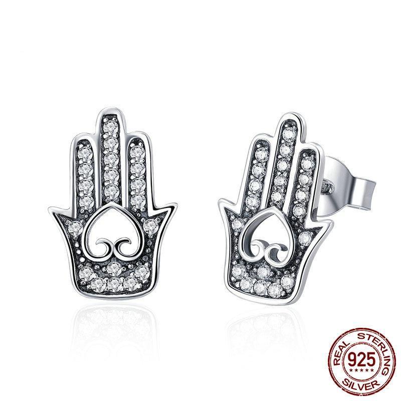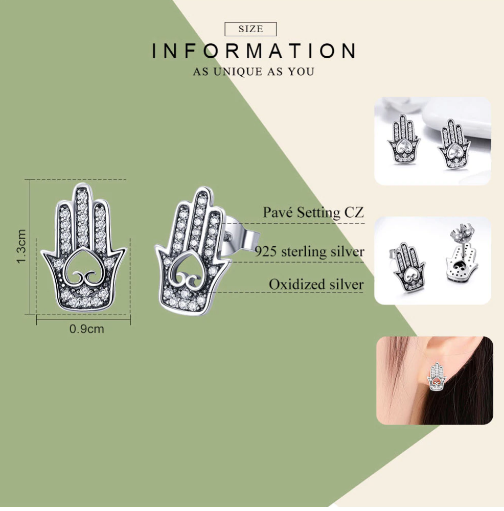 925 Sterling Silver Fatima's Guarding Hand Stud Earrings