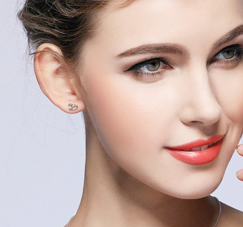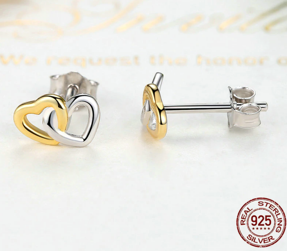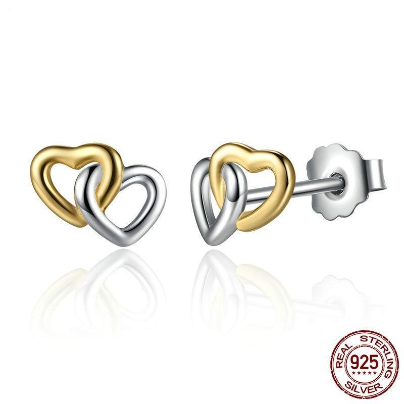 925 Sterling Silver Heart to Heart Small Stud Earrings Women