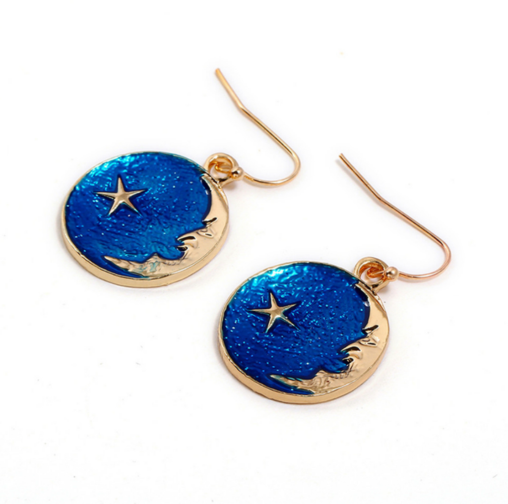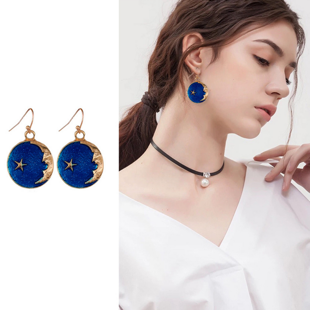 Beautiful Fashion Blue Star Moon Earrings Girls Jewelry Gift For Women