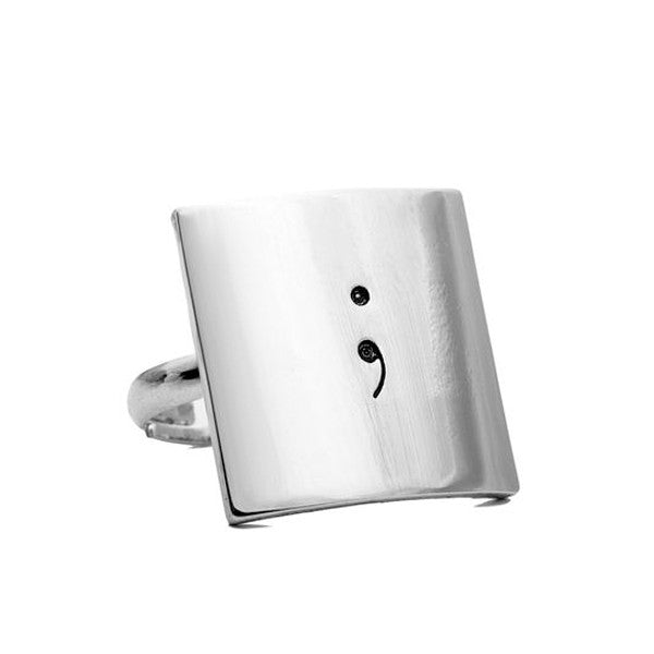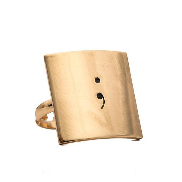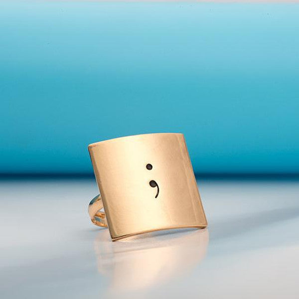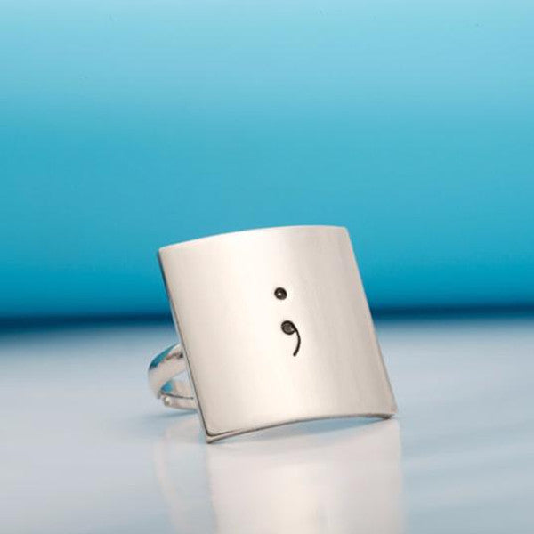 Carefully hand-stamped with the words "My story isn't over yet" along with a semicolon, this necklace is a symbol of strength and overcoming obstacles. The semicolon is used when a sentence could have ended, but didn't. The semicolon is symbolic for anyone who has ever self-harmed, has a personality disorder, or suffers from depression. The semicolon is a sign of hope, showing that you could've ended things but you chose to keep moving forward; your story hasn't ended yet.